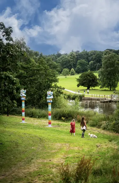 The Guardians of Bird Island is a playful sculptural installation by Lenny and Whale and overlooks the lake at Cannon Hall.